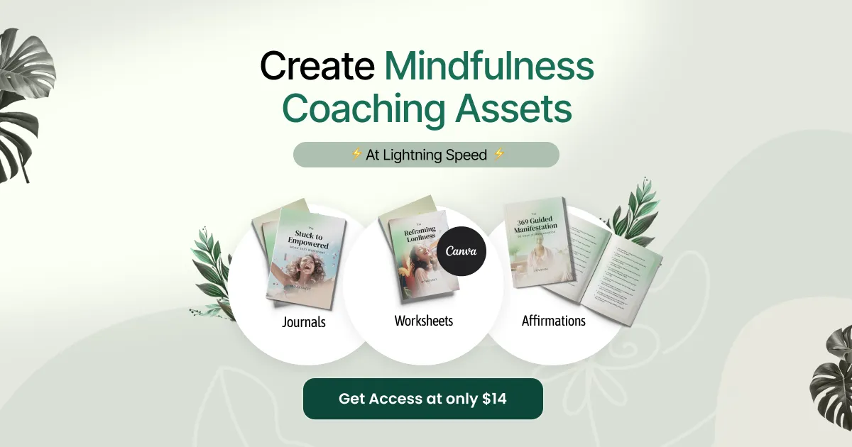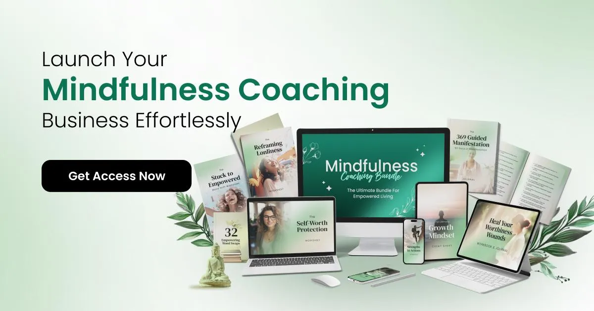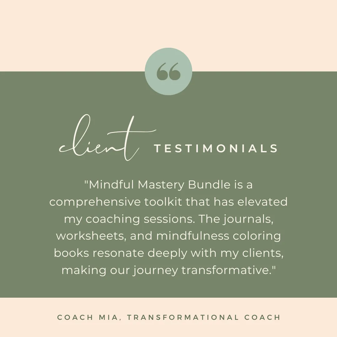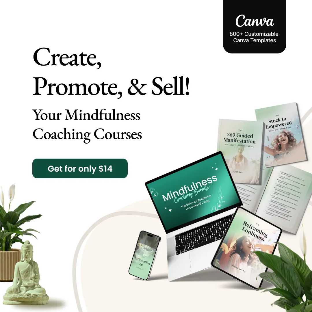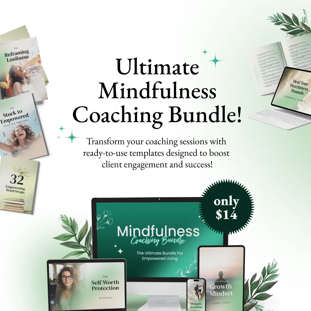 This comprehensive bundle is perfect for you for a holistic approach of Mindfulness coaching. It combines essential tools like Journals, Planners, Trackers, Worksheets, colouring books and Affirmations cards for personalized interventions. These empowers you to engage clients effectively, foster self-awareness, and establish a credible online presence, enriching the coaching journey.