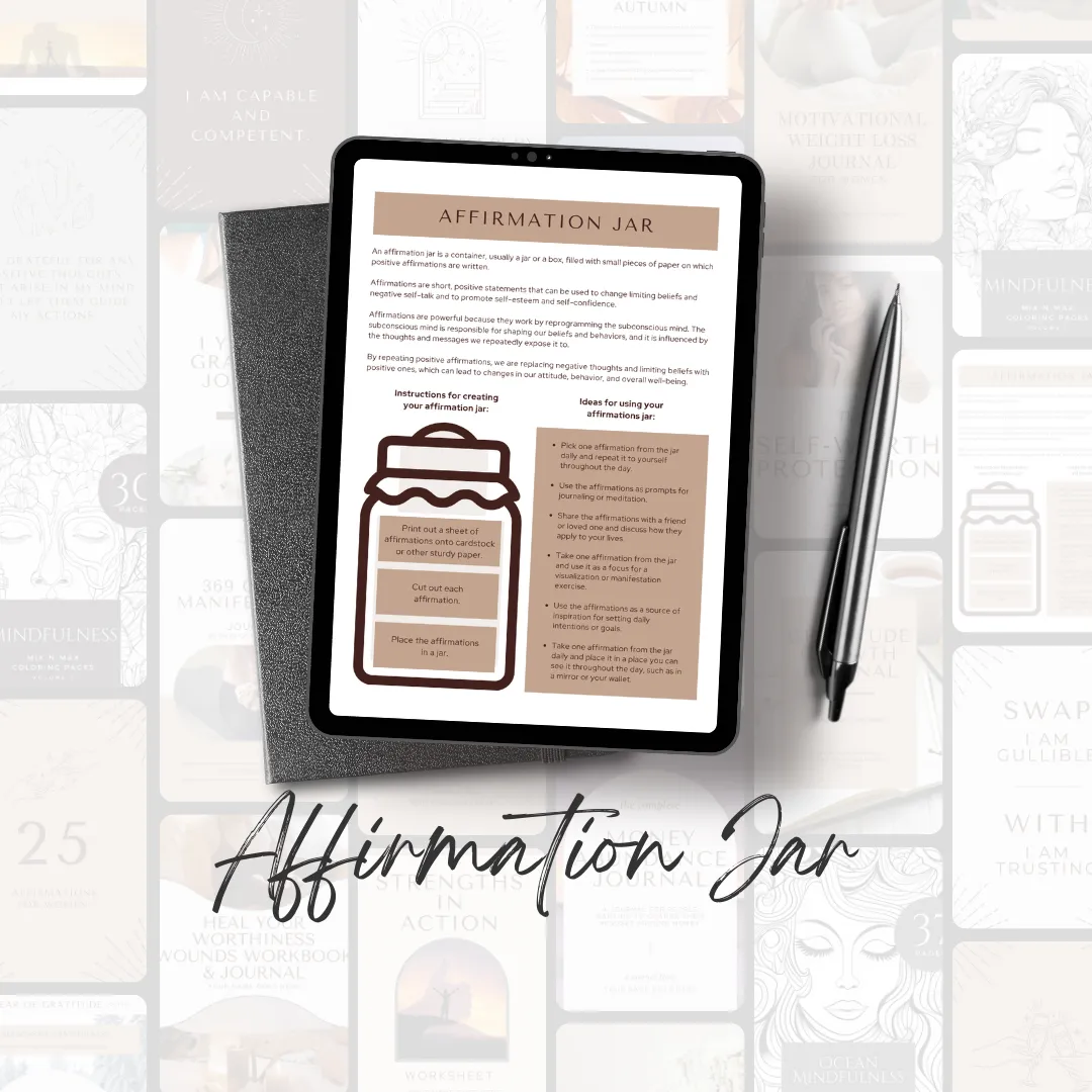 Add a tactile element to affirmations. The Affirmation Jar provides a tangible way for clients to select daily affirmations, fostering positivity, and self-empowerment in their daily lives.